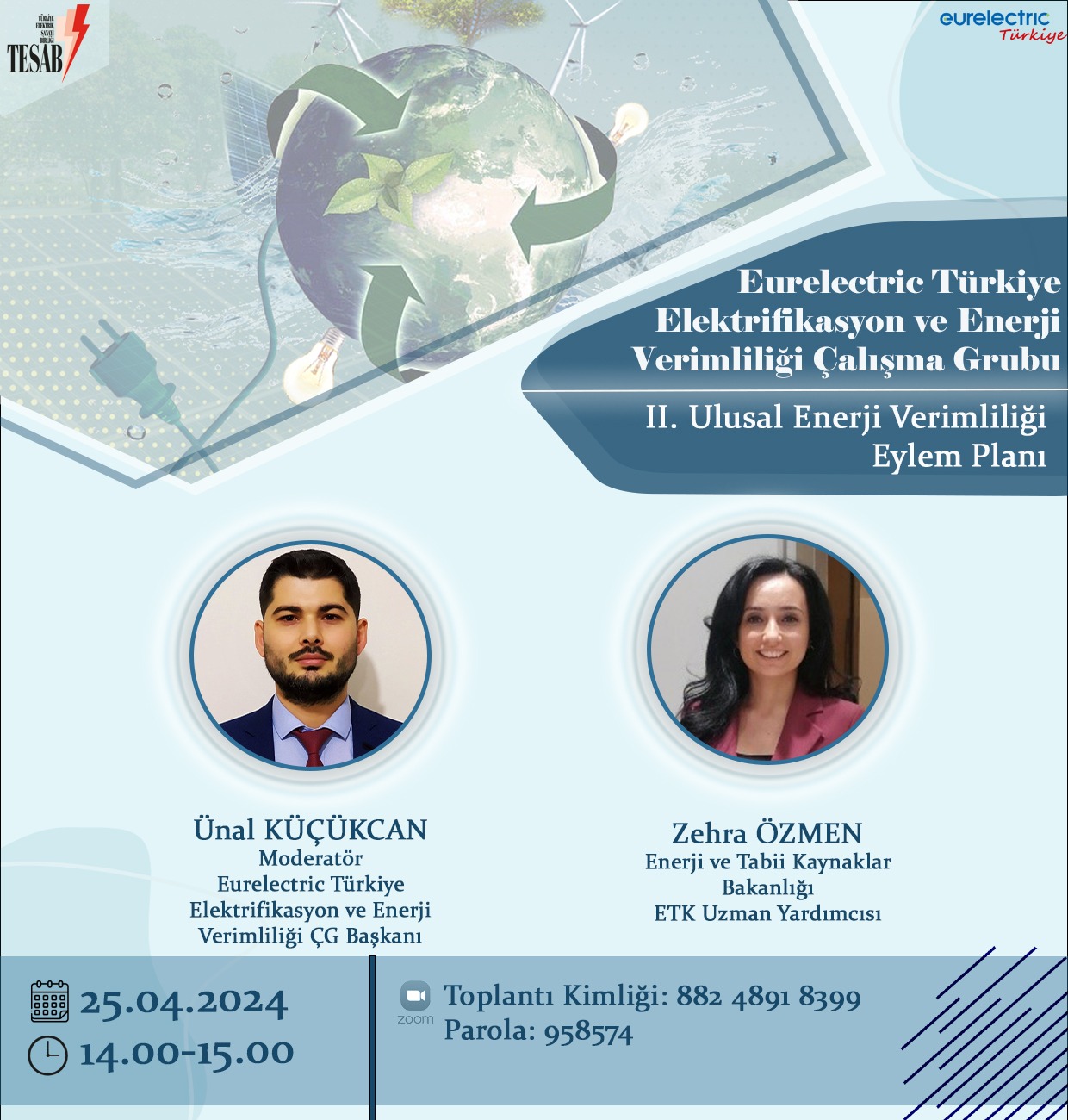 25 Nisan 2024 tarihinde çevrimiçi yapılan toplantıda Enerji ve Tabii Kaynaklar Bakanlığı Enerji ve Çevre Dairesi Başkanlığından Uzman Yardımcısı Sn. Zehra Özmen tarafından II. Enerji Verimliliği Eylem Planı hakkında katılımcılar bilgilendirildi. Çalışma Grubu başkanı Ünal Küçükcan moderatörlüğünde yürütülen webinarda “Enerji Verimliliği 2030 Vizyonu,...