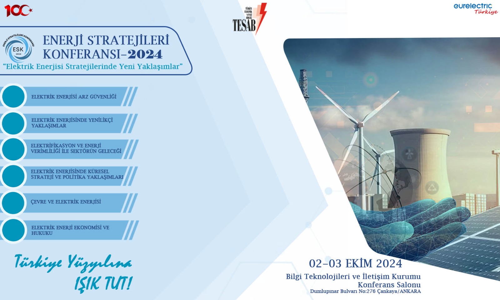 Türkiye Elektrik Sanayi Birliği (TESAB) olarak ilki bu yıl olmak üzere “Enerji Stratejileri Konferansı (ESK2024)”ü düzenliyor. Sektörümüzü sosyal bilimler ve disiplinler arası çalışmalarla buluşturmayı hedefleyen konferansımız, 2-3 Ekim 2024 tarihleri arasında Ankara Bilgi ve İletiişim Teknolojileri Kurumu Konferans Salonu’nda gerçekleşecek....