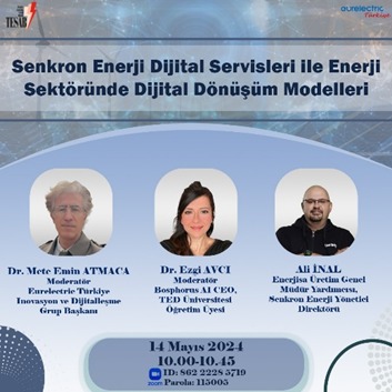 “Enerji Sektöründe Dijital Dönüşüm Modelleri: Senkron Enerji Dijital Servisleri” Eurelectric Türkiye İnovasyon ve Dijitalleşme ÇG tarafından 14 Mayıs 2024 tarihinde düzenlenen, moderatörlüğü ÇG Başkanı Dr. Mete Emin Atmaca ve ÇG üyesi Dr. Ezgi Avcı tarafından yürütülen çevrimiçi toplantıda konuk konuşmacı Enerjisa Üretim Genel Müdür Yardımcısı ve...